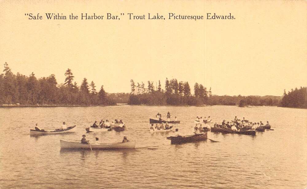Edwards New York Canoeing On Trout Lake, Sepia Tone Photo Print Postcard U12234