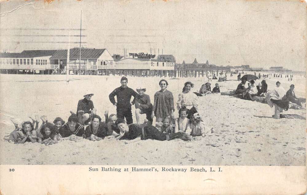 Long Island New York Sun Bathing At Hammel’s, Rockaway Beach Vintage PC U12228