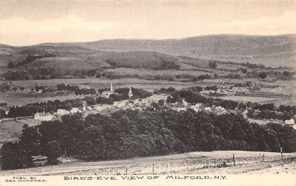 Milford New York Bird’s Eye View Of Town, Divided Back, Vintage Postcard U12230