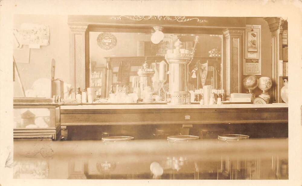 Soda Fountain Bar Interior View Coke Sign Real Photo Vintage Postcard AA78195