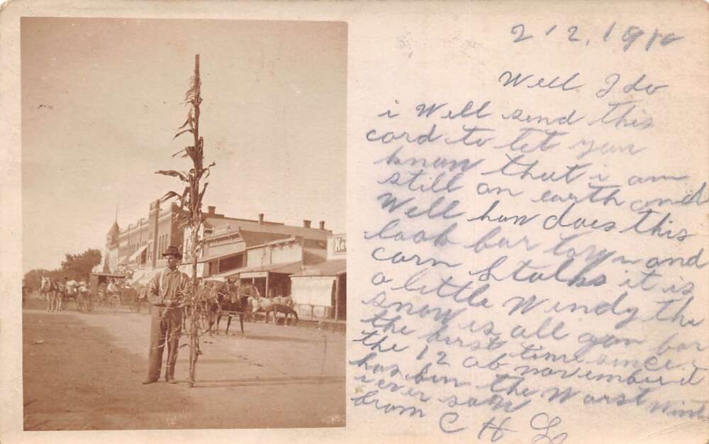 Bird City Kansas Man in Street with Corn Stalk Real Photo Postcard AA78196