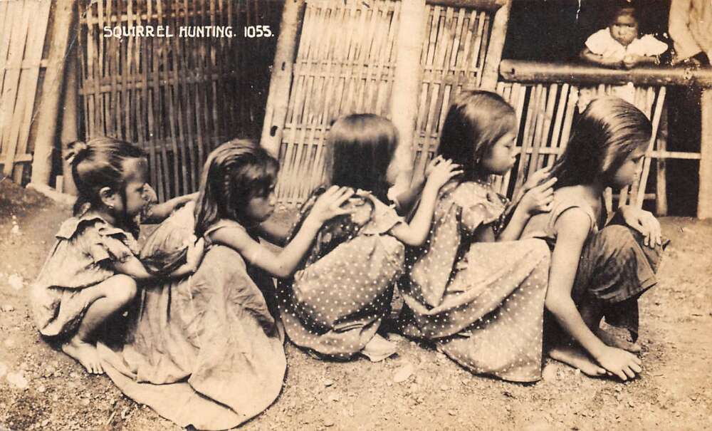 “Squirrel Hunting” Native Indigenous Children Girls Real Photo PC AA78215