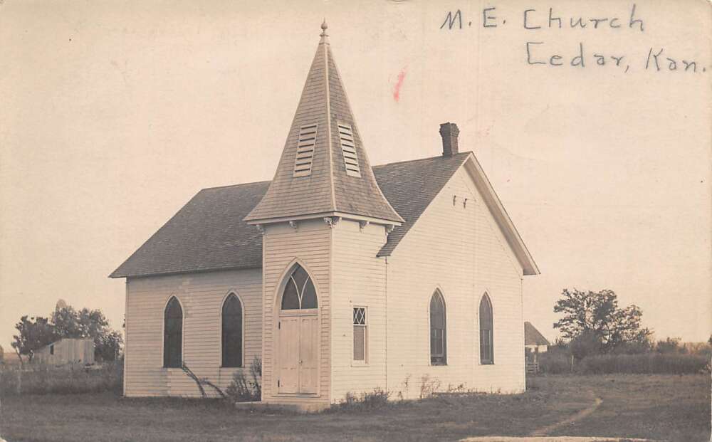 Cedar Kansas ME Church Real Photo Vintage Postcard AA78217