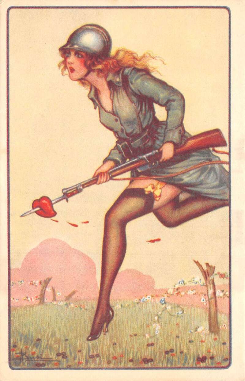 Lady Soldier with Bleeding Heart Italian WW2 Busi Artist Signed PC AA78219