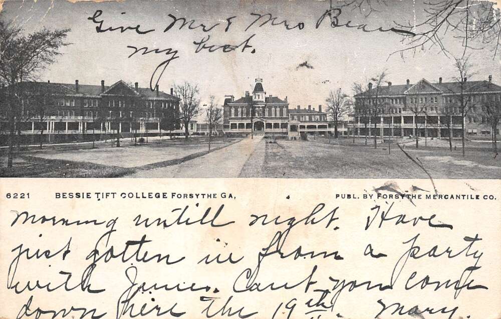 Forsythe Georgia Bessie Tift College, B/W Lithograph Vintage Postcard U15602
