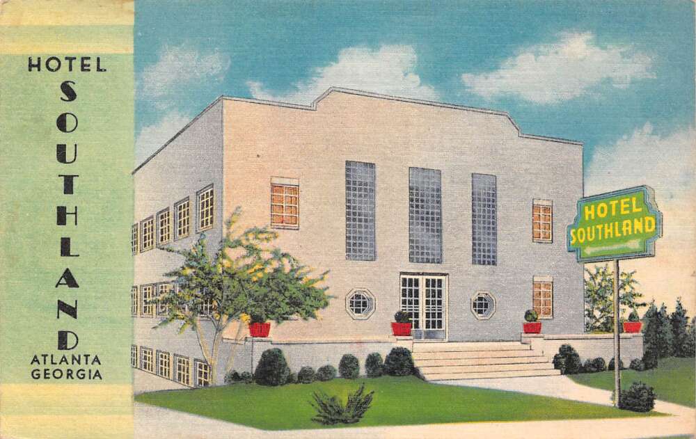 Atlanta Georgia Hotel Southland, Color Linen Vintage Postcard U15612