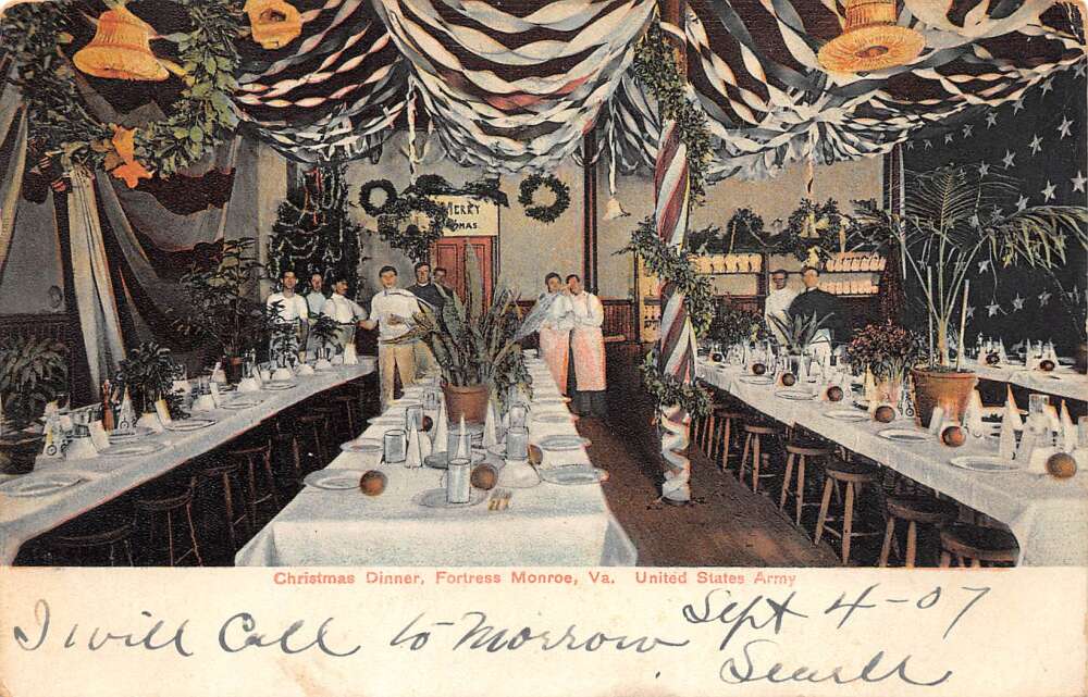 Monroe Virginia Christmas Dinner, Fortress Monroe, U.S. Army, Vintage PC U12939