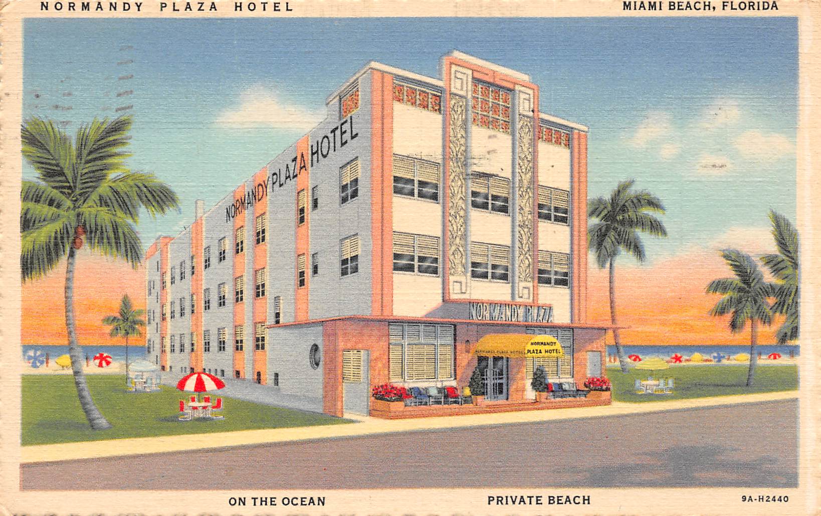 Miami Beach Florida Normandy Plaza Hotel, Color Linen Vintage Postcard U12116