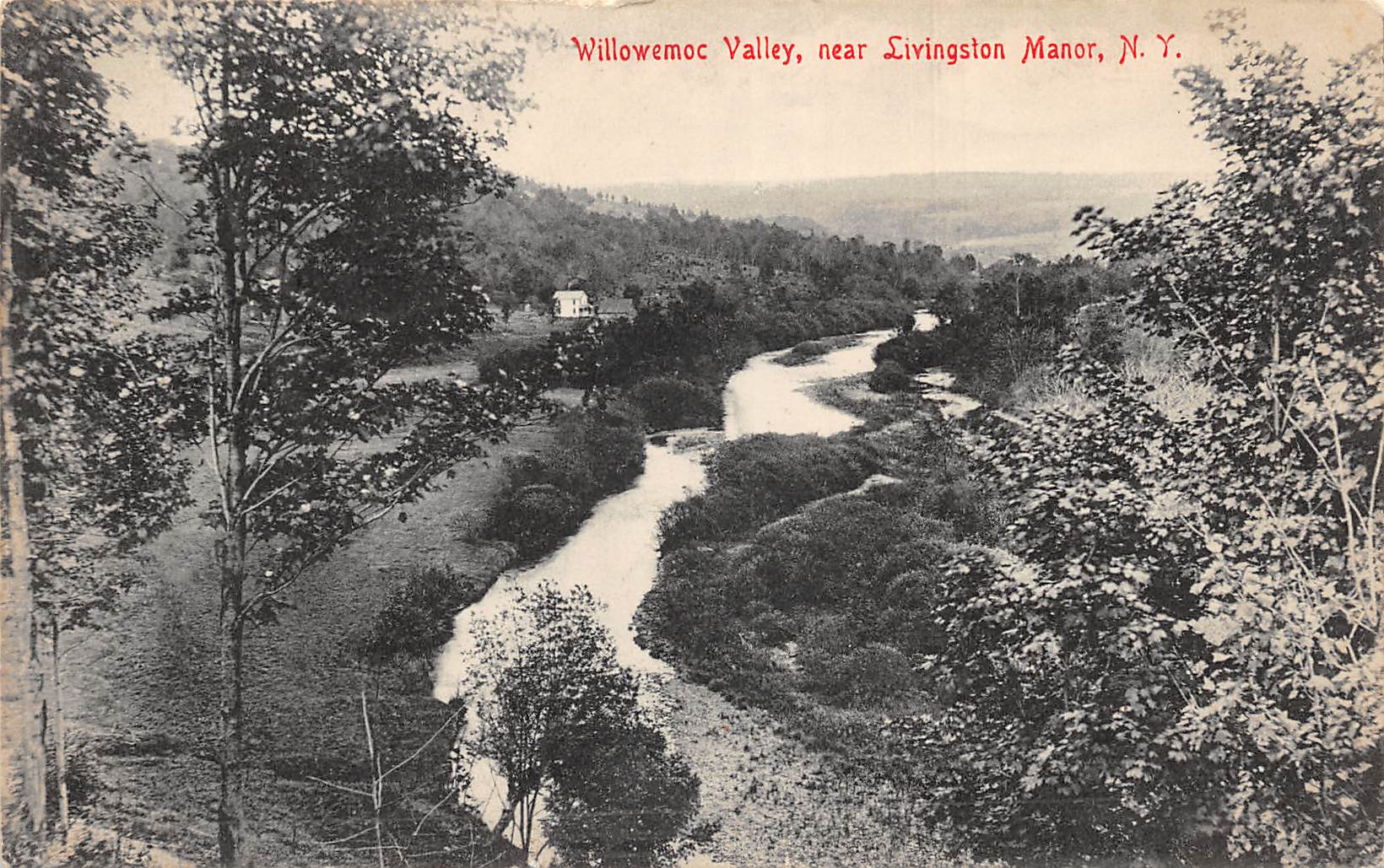 Livingston Manor New York Willowemoc Valley, B/W Lithograph Vintage PC U12129