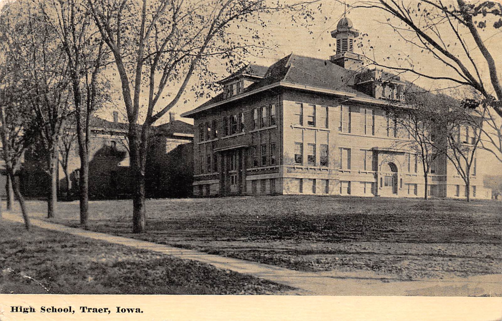 Traer Iowa High School, B/W Lithograph Vintage Postcard U15946