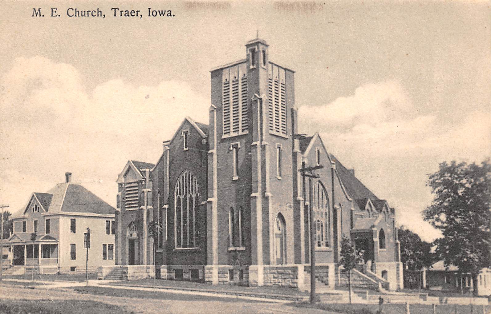Traer Iowa Methodist Episcopal Church, B/W Lithograph Vintage Postcard U15947