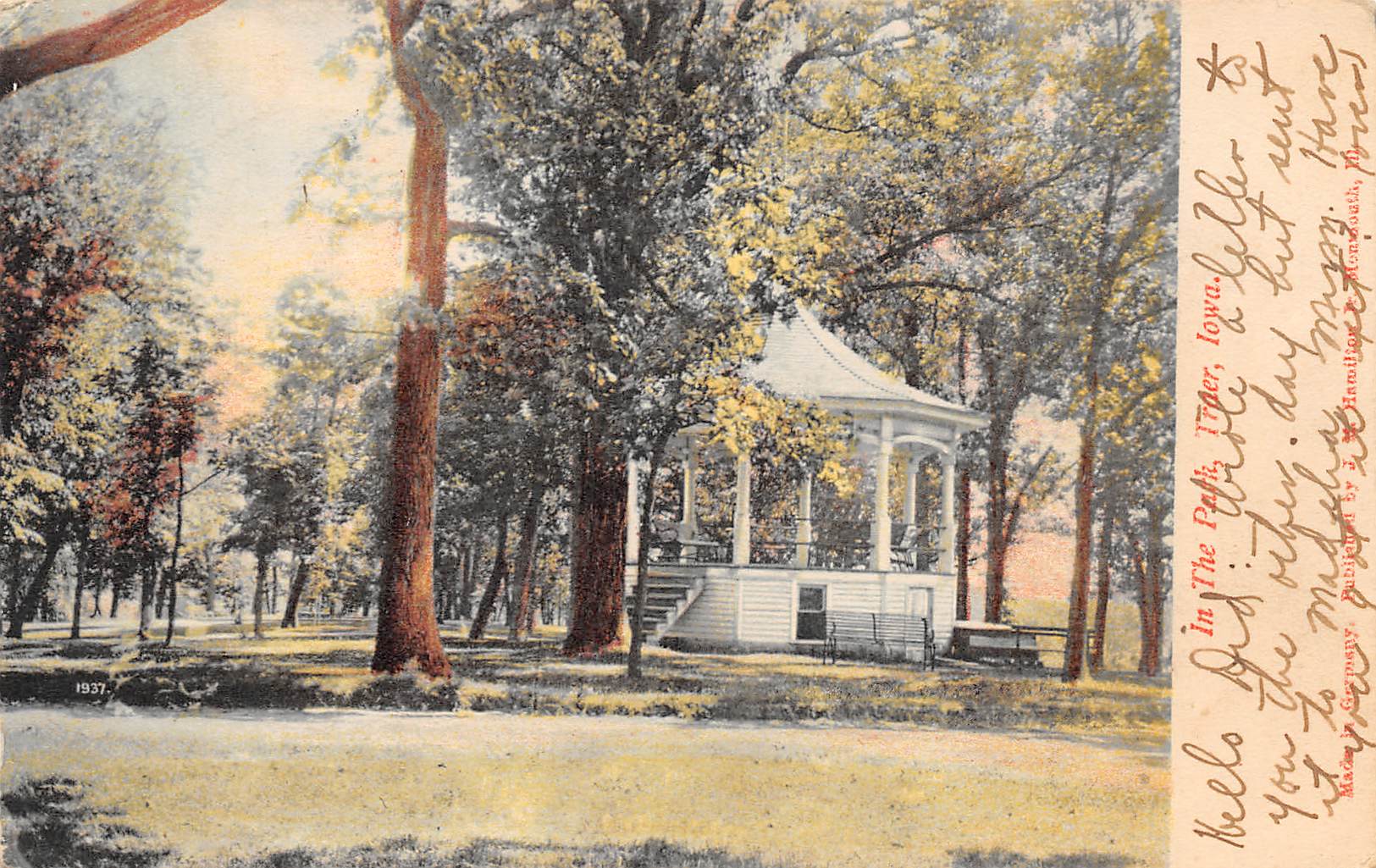 Traer Iowa In The Park, Color Lithograph Vintage Postcard U15953