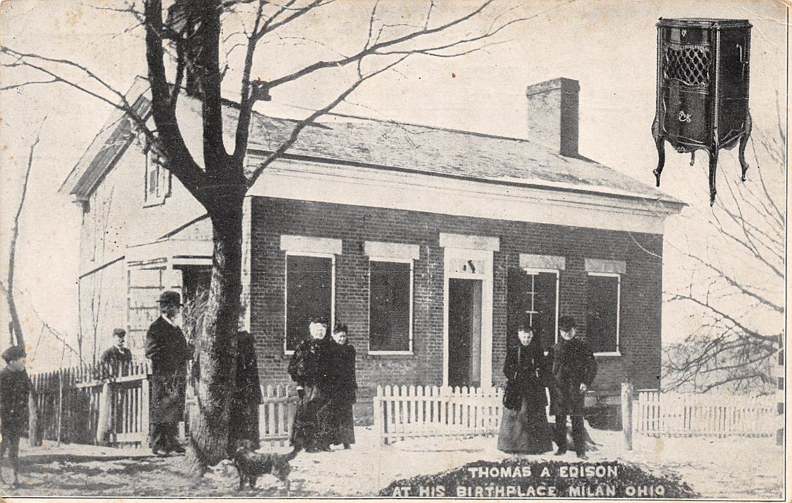Milan Ohio Thomas Edison At His Birthplace, B/W Lithograph Vintage PC U15954