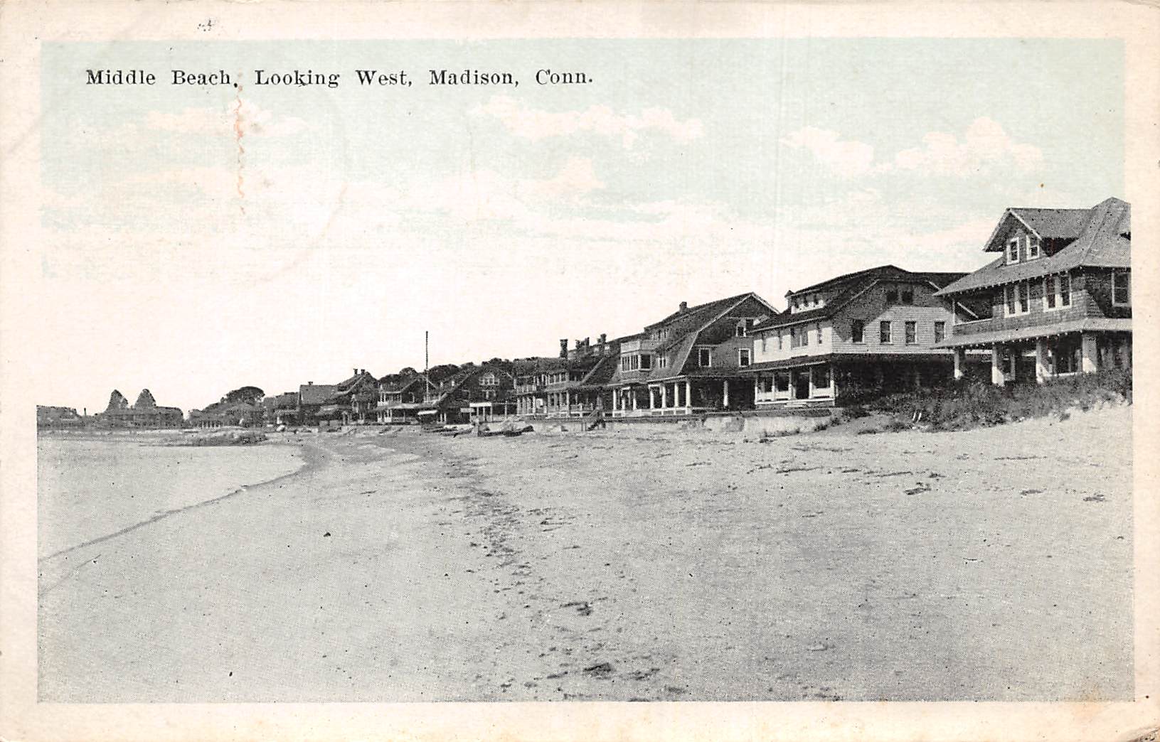 Madison Connecticut Middle Beach, Looking West, White Border Vintage PC U12191