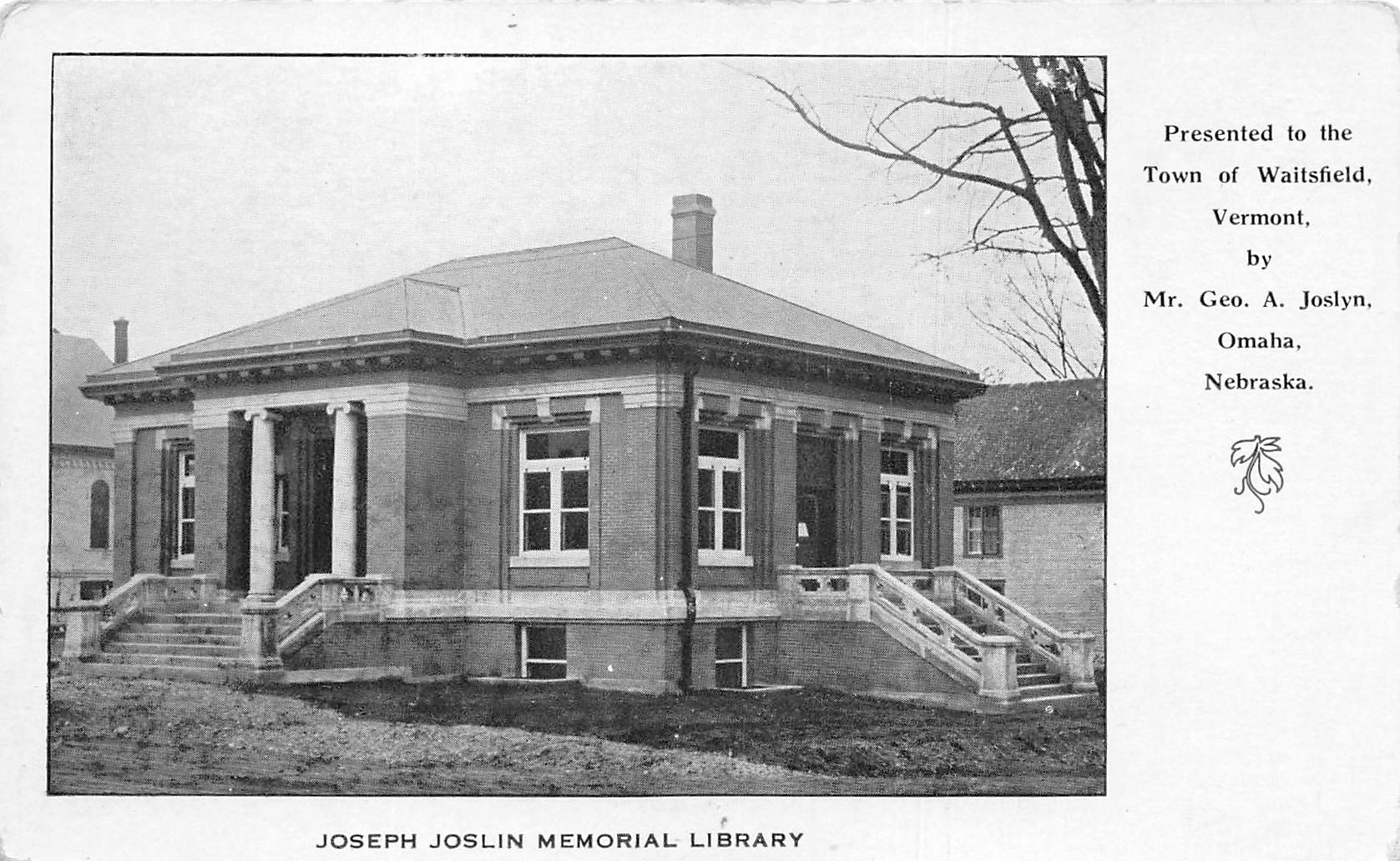 Waitsfield Vermont Joseph Joslin Memorial Library, Undivided Back, PC U12194