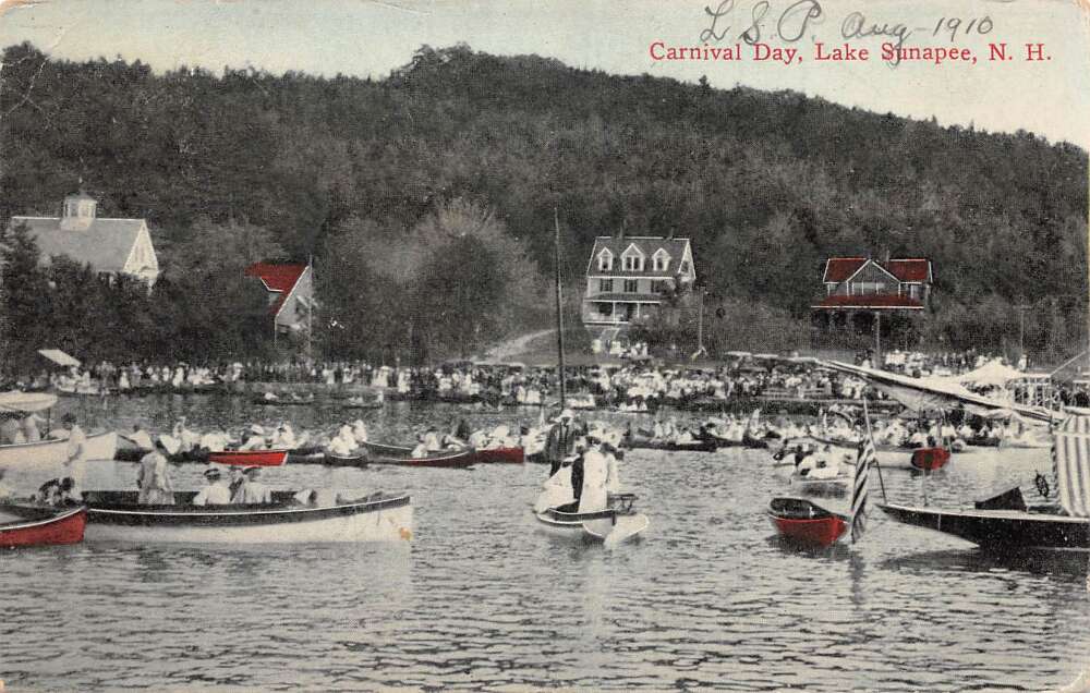 Lake Sunapee New Hampshire Carnival Day Scene, Color Lithograph Postcard U12202