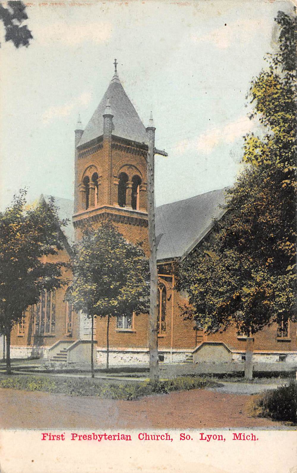 South Lyon Michigan First Presbyterian Church, Color Lithograph Postcard U12337