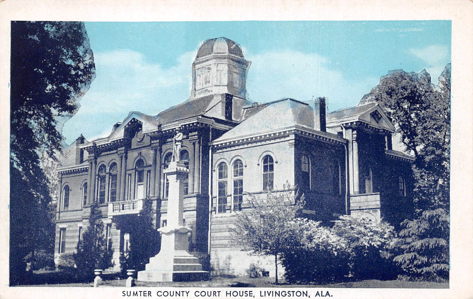 Livingston Alabama Sumter County Court House, Sky Tinted, Vintage PC U12353