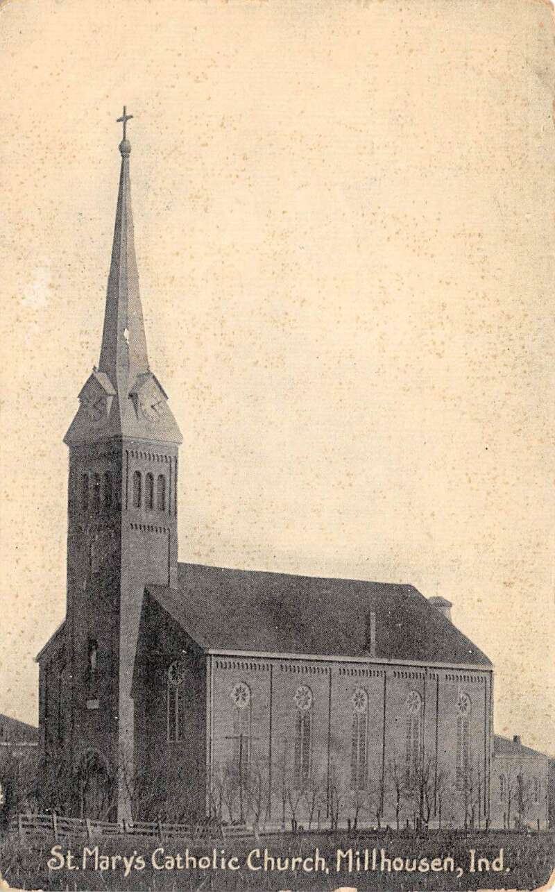 Millhousen Indiana St. Mary’s Catholic Church, Sepia Tone Photo Print PC U12356