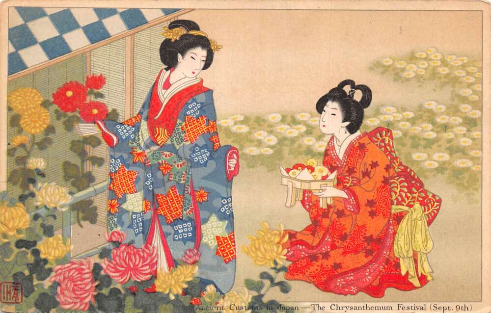 Japan Chrysanthemum Festival Geisha Girls with Flowers Vintage Postcard AA77855