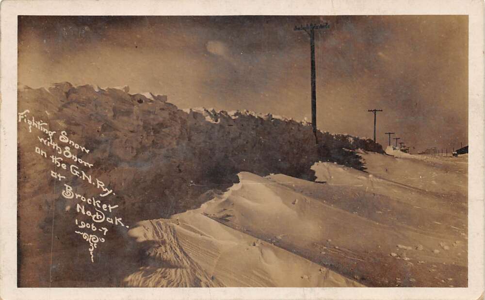 Brocker North Dakota GN Railway Snow Storm Real Photo Vintage Postcard AA77864