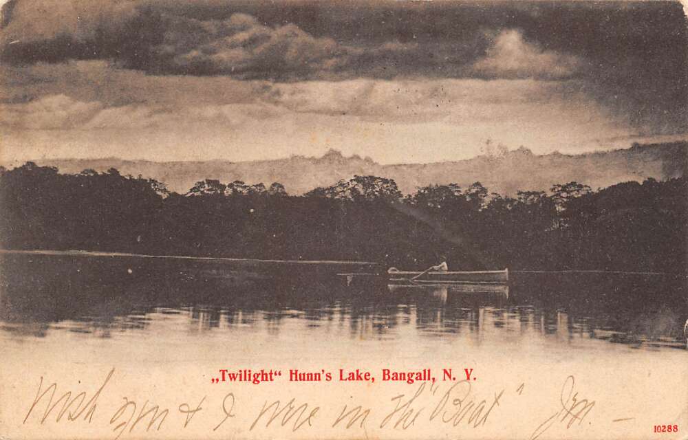 Bangall New York Twilight On Hunn’s Lake, B/W Lithograph Vintage Postcard U15568