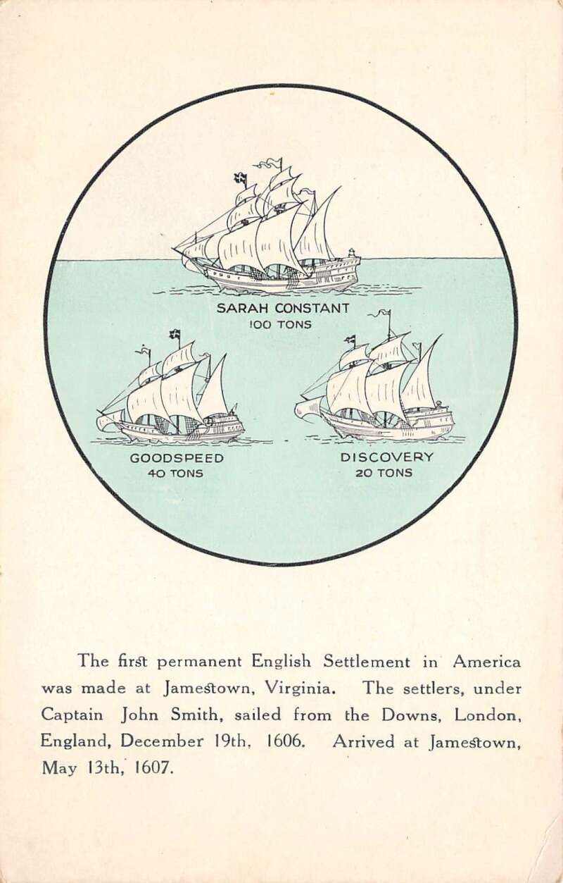 Jamestown Virginia Sailing Ships Of Jamestown’s First Settlers, Divided Back,PC U12500