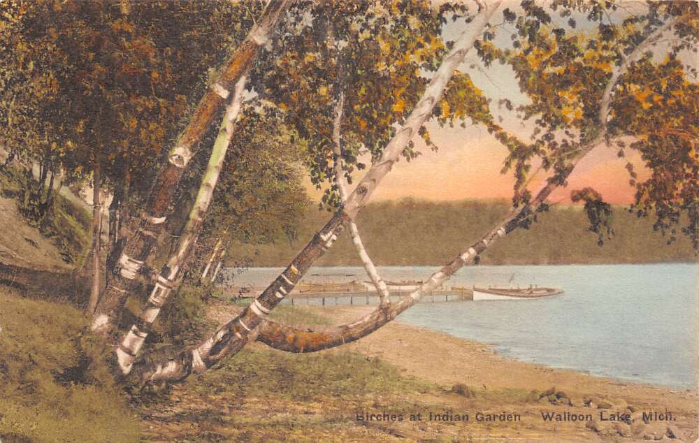 Walloon Lake Michigan Birches At Indian Garden, Hand Colored Vintage PC U12504