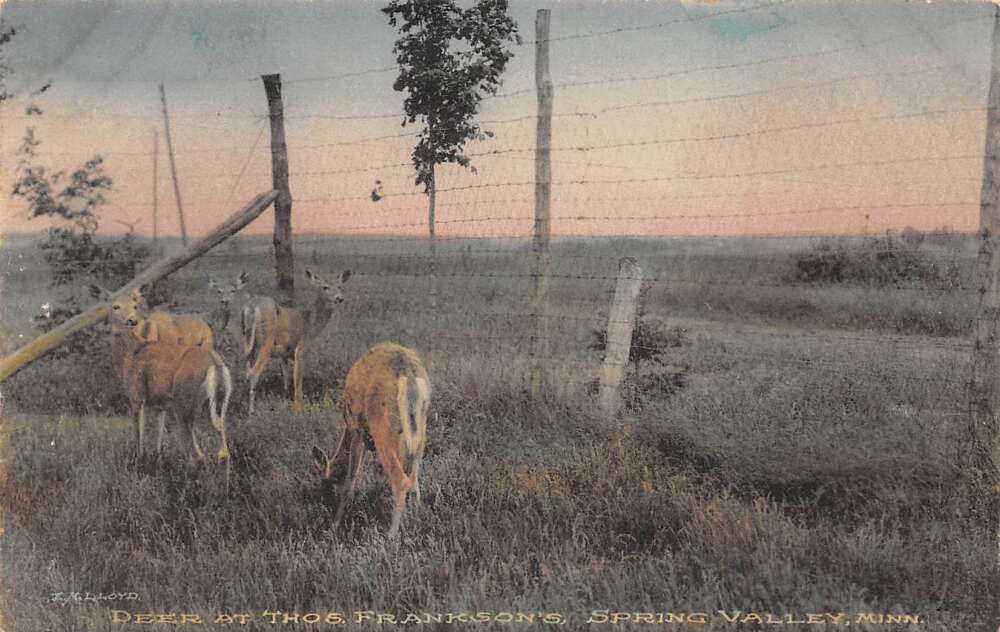 Spring Valley Minnesota Deer At Thomas Frankson’s, Hand Colored Postcard U12506