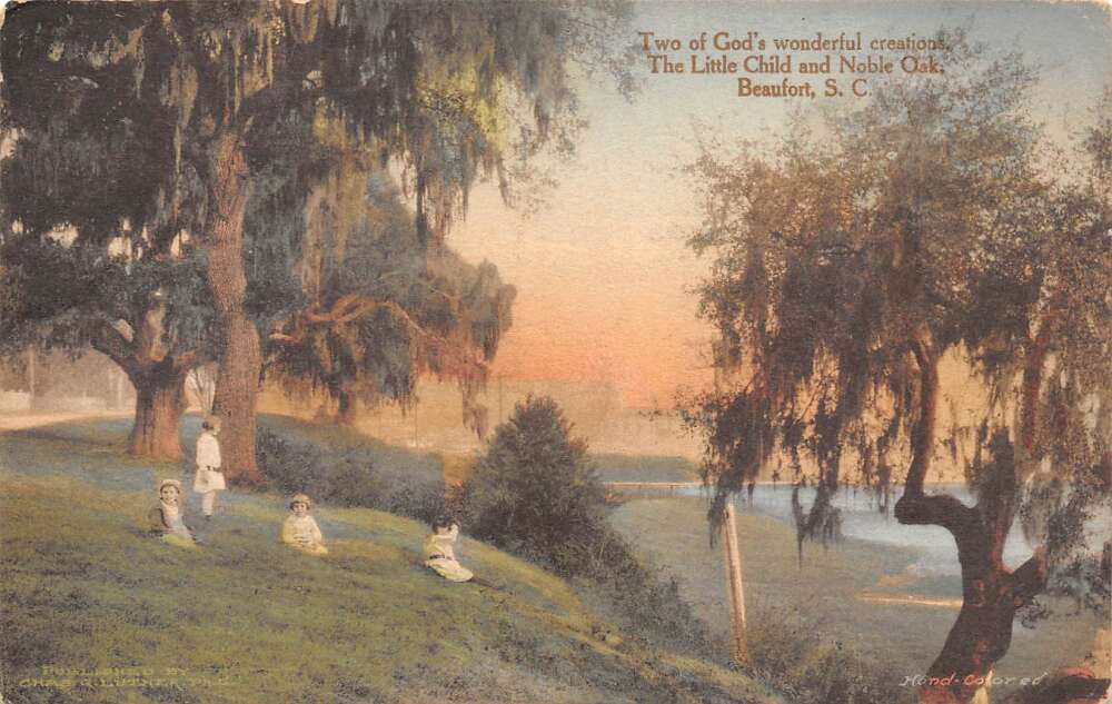 Beaufort South Carolina Little Children & Noble Oak Tree, Hand Colored PCU12508