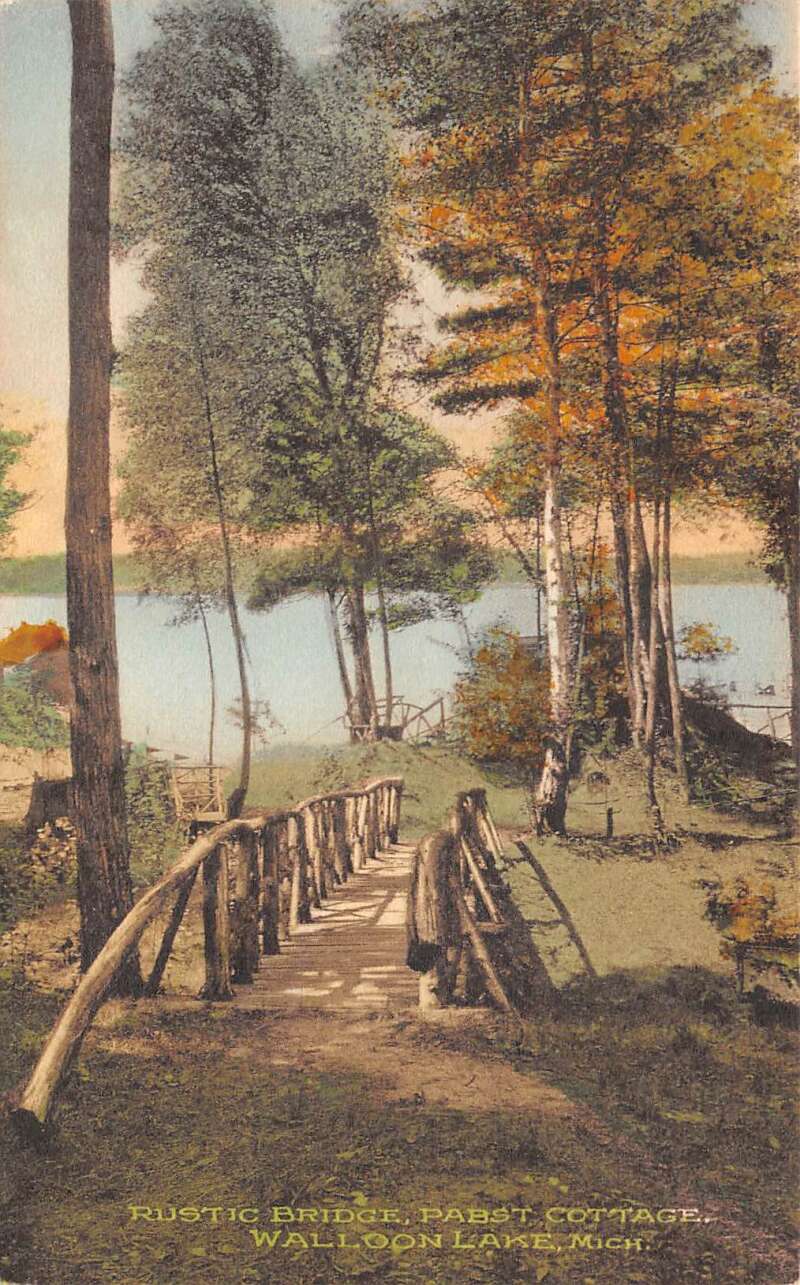 Walloon Lake Michigan Rustic Bridge, Pabst Cottage, Hand Colored PC U12511