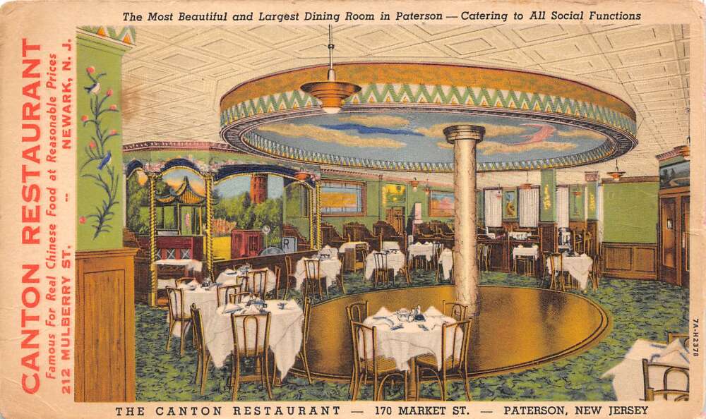 Newark New Jersey Canton Restaurant, Interior, Color Lithograph Postcard U12512