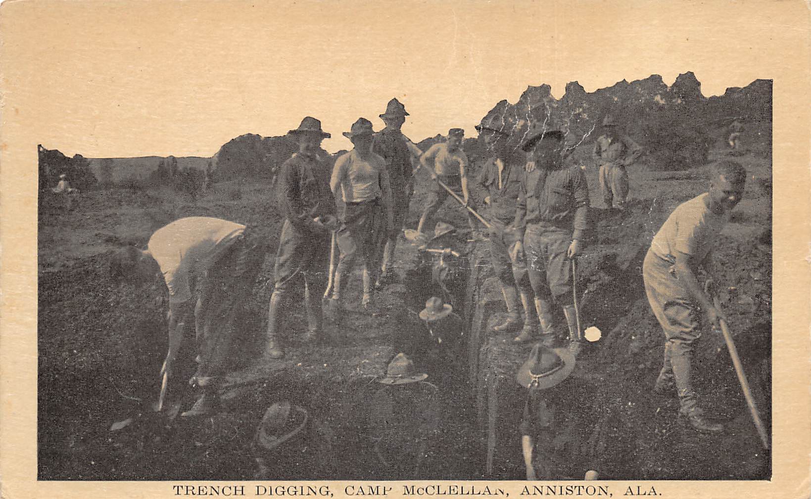 Anniston Alabama Trench Digging, Camp McClellan, Vintage Postcard U12325