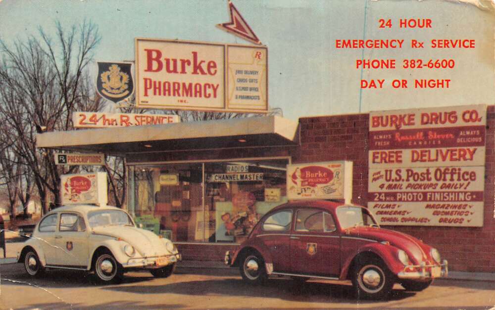 5 Points Grand Island Nebraska Burke Pharmacy Drug Store Postcard AA78989