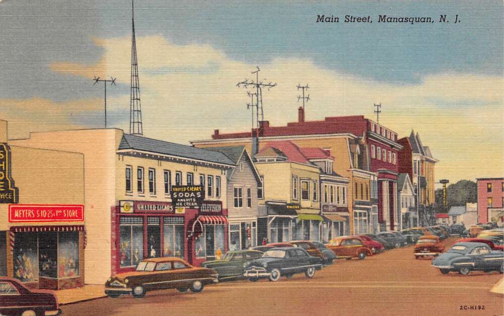 Manasquan New Jersey Main Street Linen Vintage Postcard AA78990