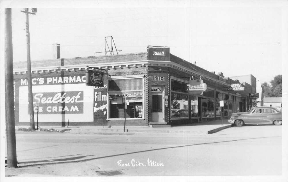 Rose City Michigan Rexall Drug Store Ice Cream Sign Real Photo Postcard AA78993