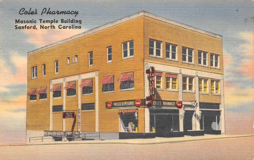 Sanford North Carolina Cole’s Pharmacy Drug Store Vintage Postcard AA79000