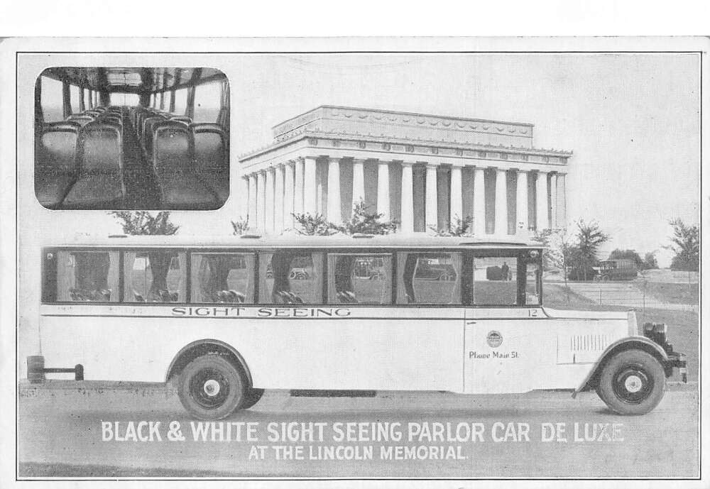 Washington DC Lincoln Memorial Black White Sight Seeing Bus Postcard AA77838