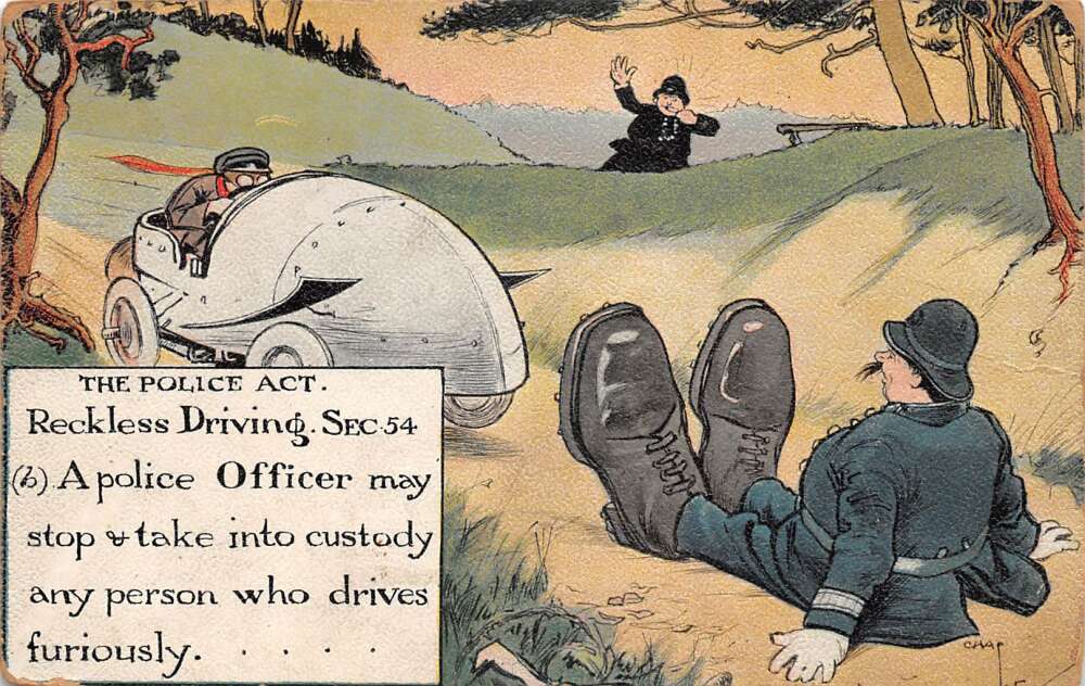 Reckless Driving Car Greetings Humor Police Officer Vintage Postcard AA77839
