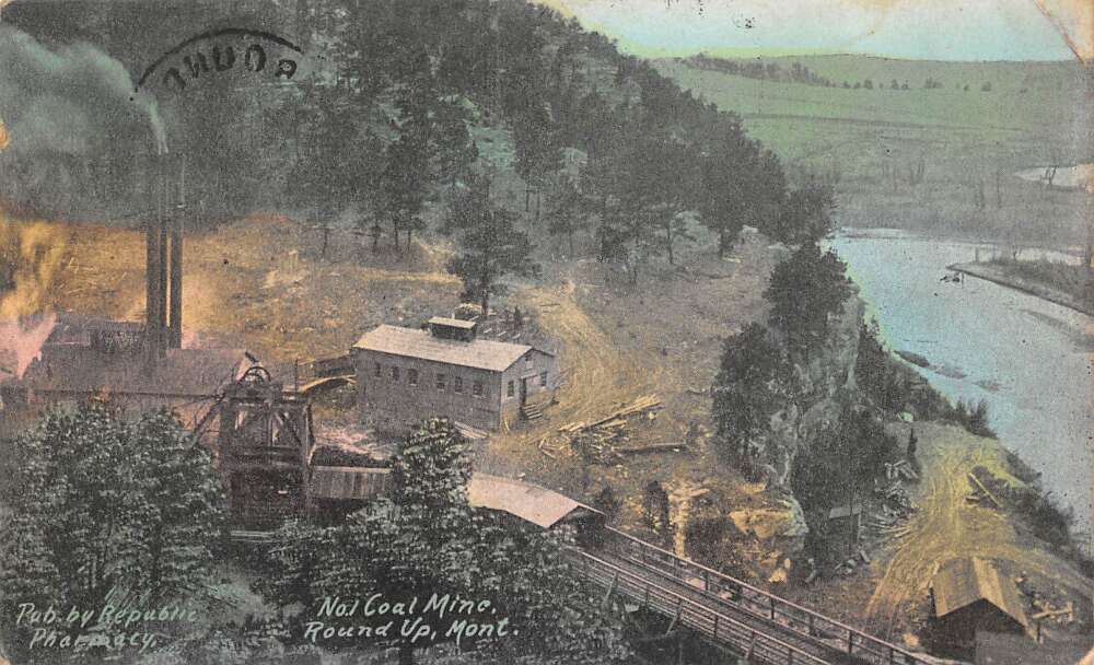Round Up Montana No.1 Coal Mine, Color Lithograph Vintage Postcard U12853