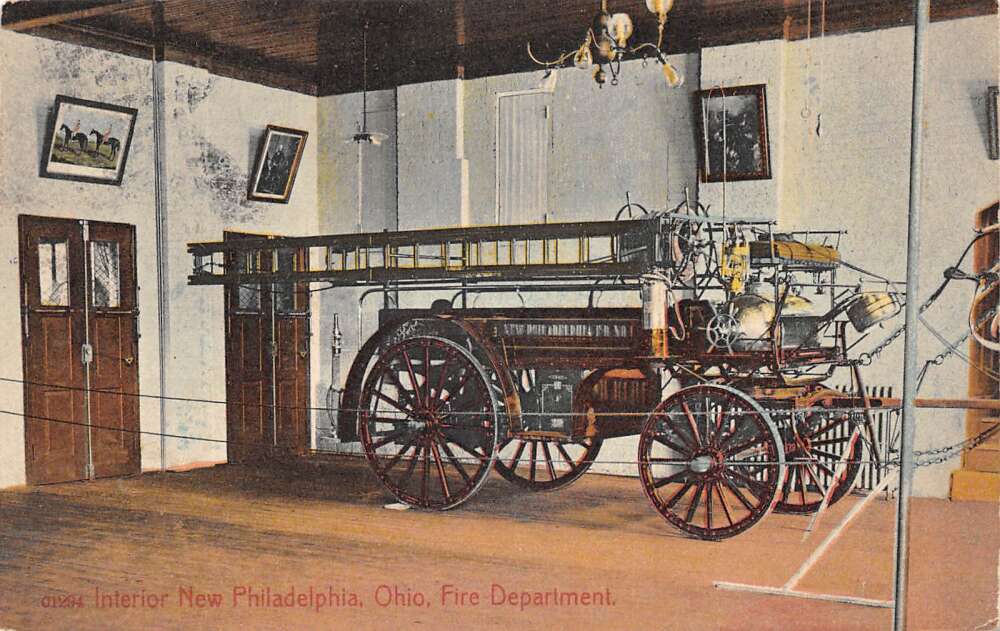 New Philadelphia Ohio Fire Department Interior Fire Wagon Postcard AA77814