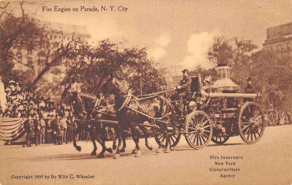 New York City Fire Engine on Parade Fire Insurance Vintage Postcard AA77815