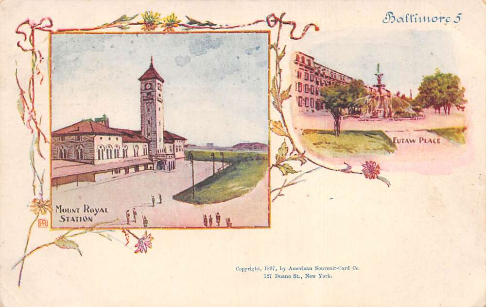 Baltimore Maryland Mount Royal Station Eutaw Place Vintage Postcard AA77819