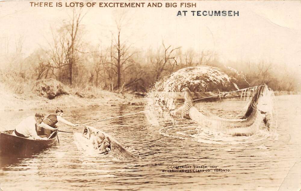 Tecumseh Michigan Fishing Exaggeration Real Photo Vintage Postcard AA77831