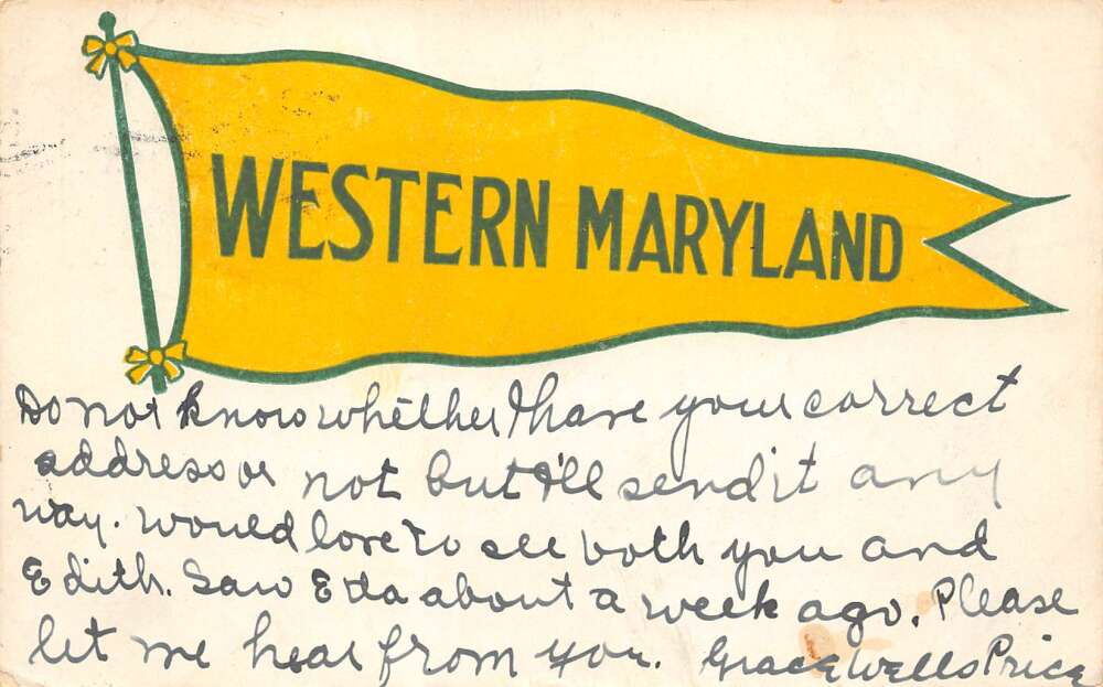 Maryland Western Maryland Yellow Pennant, Undivided Back, Vintage PC U19607