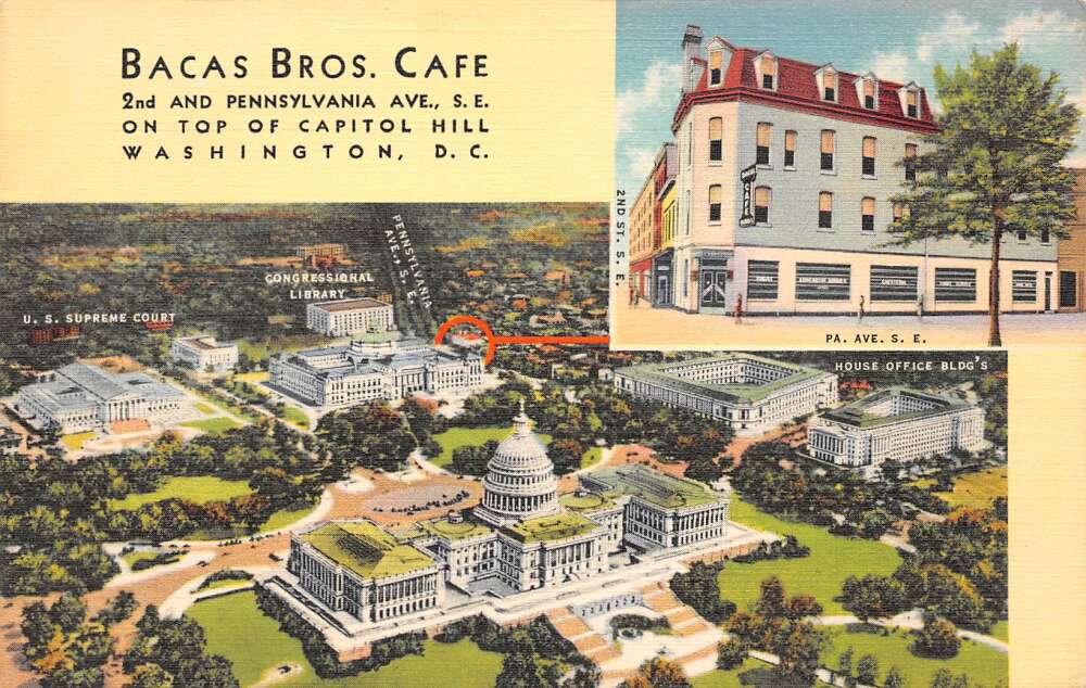 Washington D.C. Bacas Bros. Cafe, Multi-View Linen, Vintage Postcard U19612