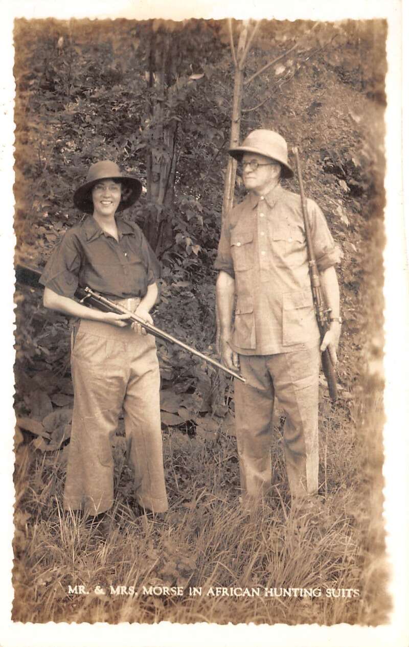 Mr and Mrs Morse in African Hunting Suits Real Photo Vintage Postcard AA110461