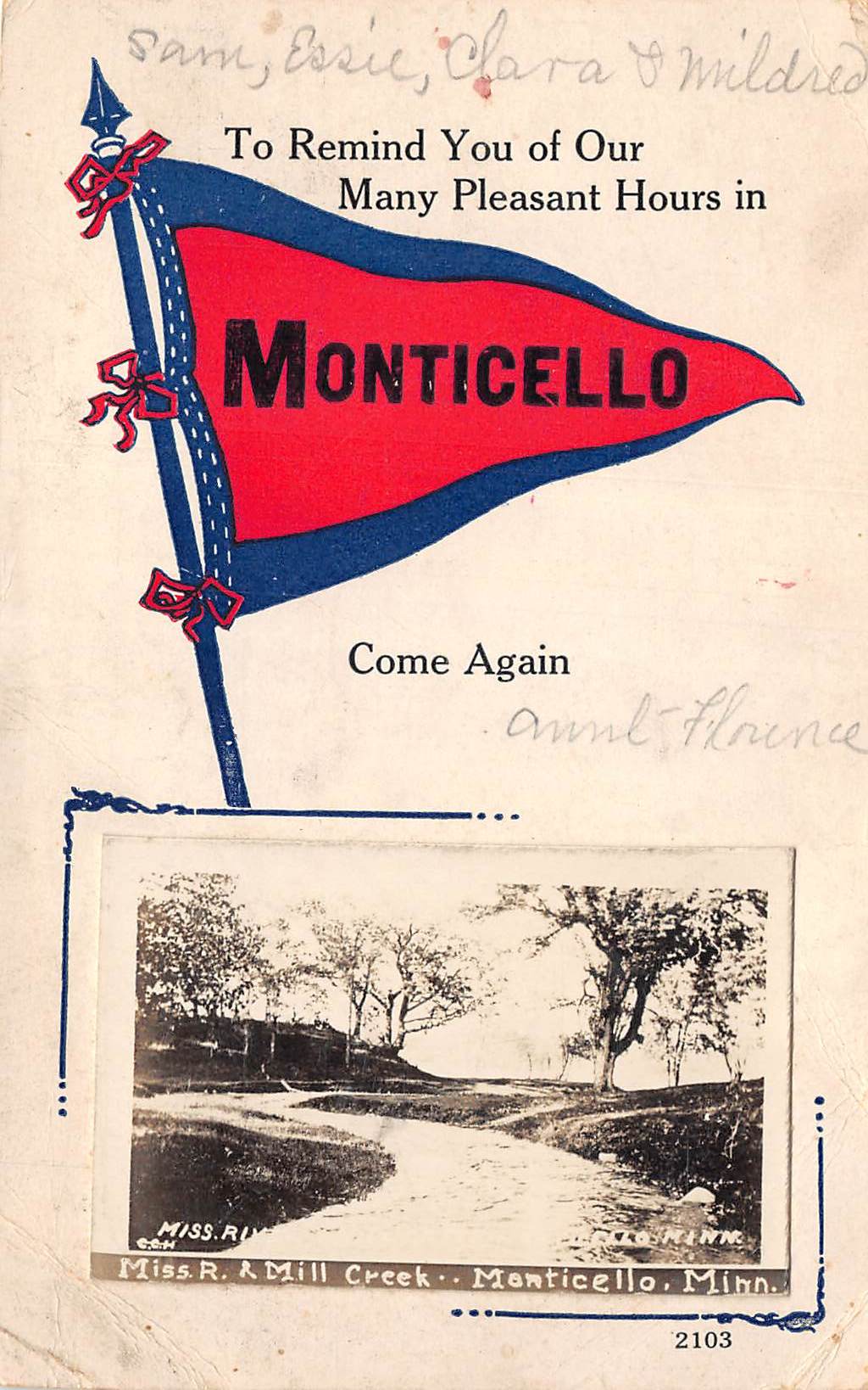 Monticello Minnesota Mississippi River & Mill Creek RPPC & Pennant Flag, PC U15710