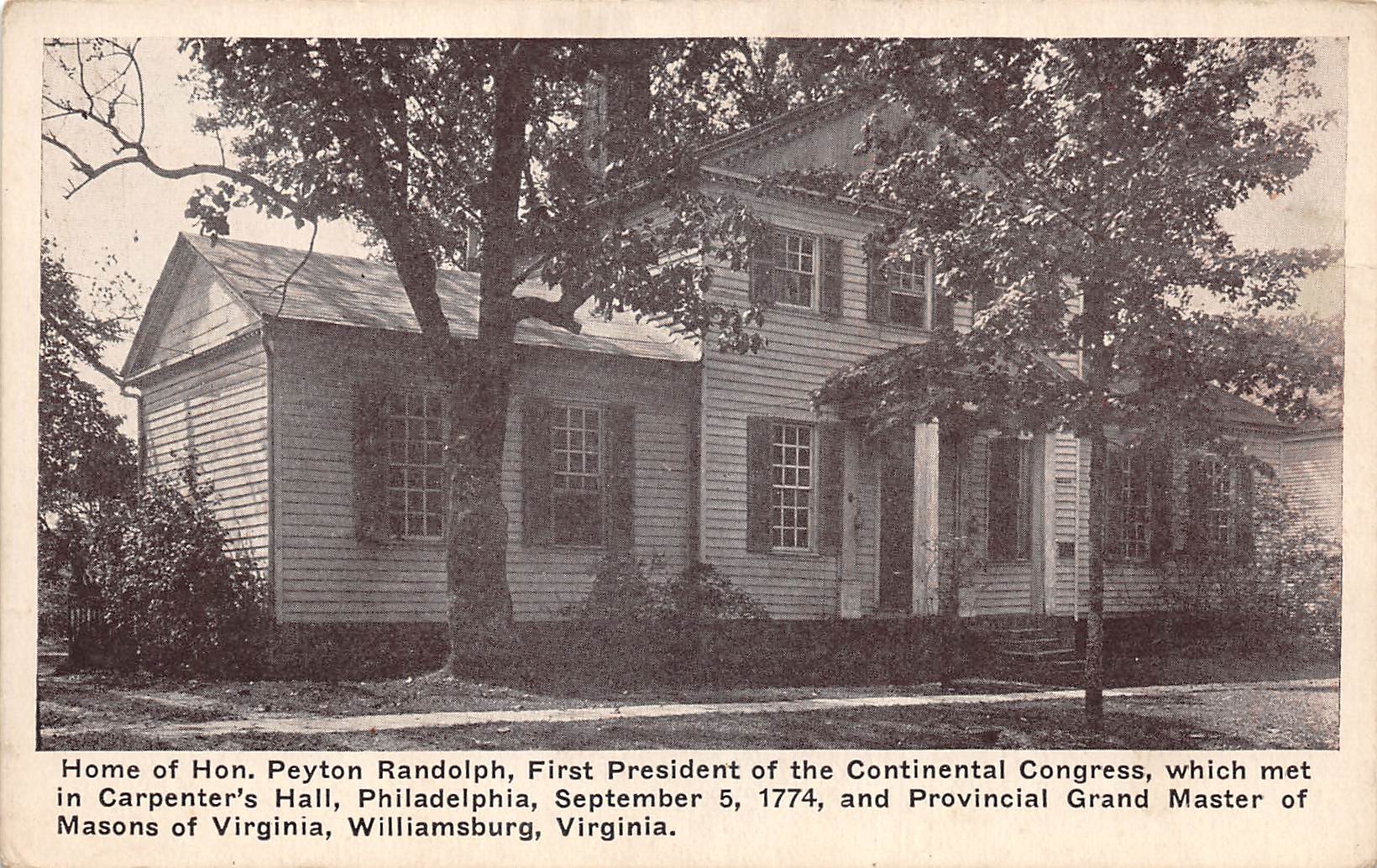 Williamsburg Virginia Home Of Peyton Randolph, B/W Photo Print Vintage PC U15724