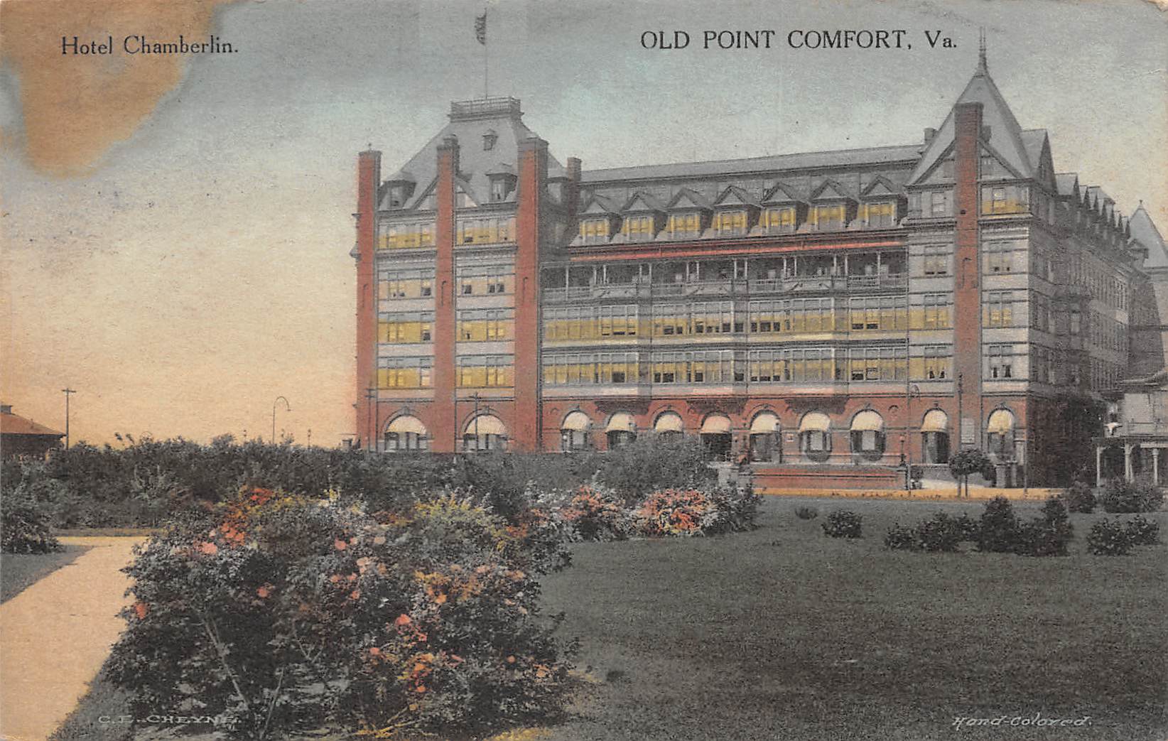Old Point Comfort Virginia Hotel Chamberlin, Hand Colored Vintage PC U15725